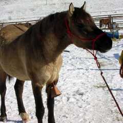 While Frosty and Spirit were out we tied the cowbell around their neck and let