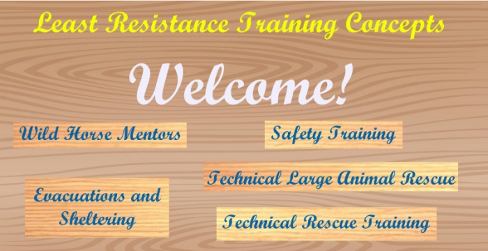 ![]() Least Resistance Training Concepts (LRTC) was started in 1999 to promote equestrian safety and to assist adopters of "wild" range horses and burros placed by the Bureau of Land Management and similar agencies. As time has progressed and needs have changed, we have increased our emphasis on technical large animal rescue, disaster planning, and evacuations and sheltering. We are an all-volunteer 501(c)(3) non-profit organization that serves the community of people who have pets and animals.