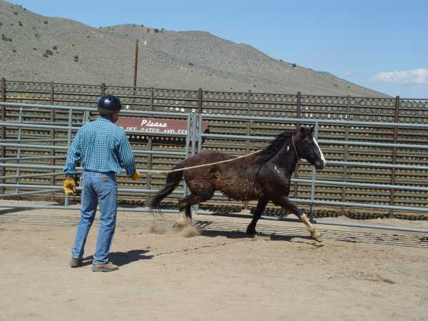 The animals in this listing received from between 1½ to three hours work during Wild Horse U, the purpose of which was primarily to desensitize the animals to people and to determine which approaches seemed to work best with each horse, the assumption being that many adopters prefer to employ their own training methods. Anyone having questions about how a horse behaved during training sessions are welcome to contact the